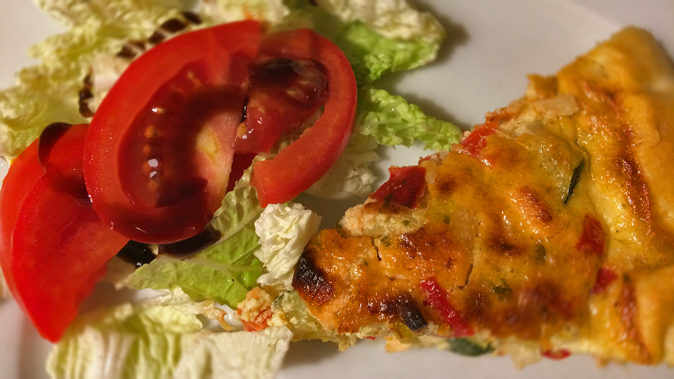 Auf meinem Speiseplan war jetzt schon länger keine Quiche mehr, obwohl ich sie wirklich gerne esse. Ich mag besonders gerne eine gute Gemüse Quiche, hier habe ich das Rezept mit frischem Lachs aufgepeppt. Selbstverständlich kann man verschiedenste Zutaten dazugeben, wie geräucherter Lachs, Salami, oder Tofu. Das Rezept geht ganz schnell und schmeckt hervorragend.
