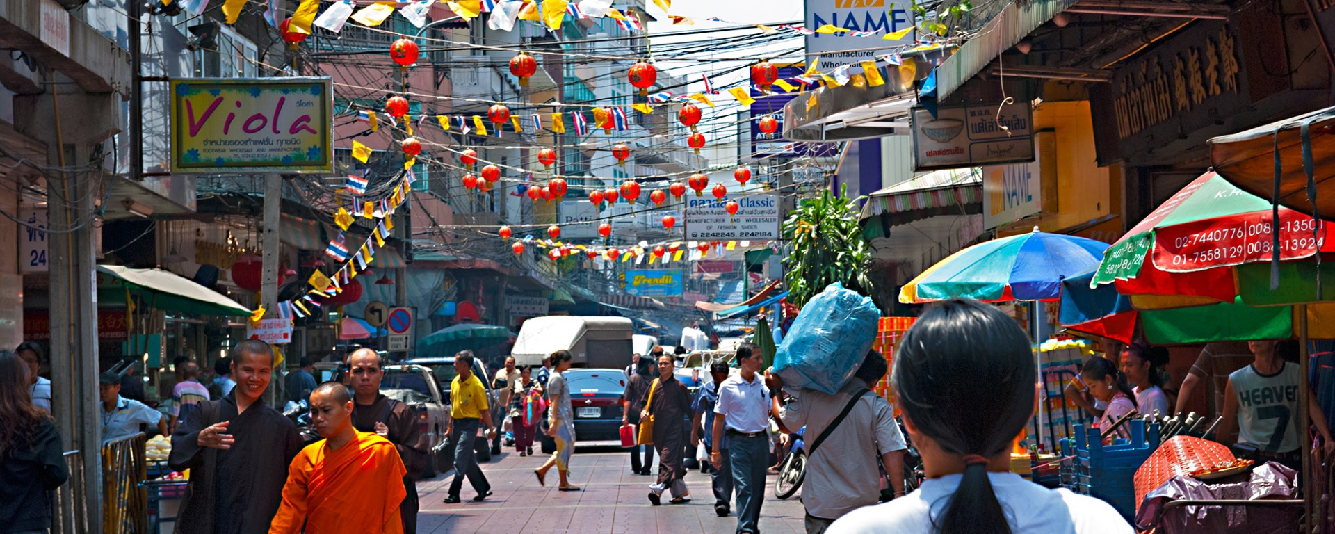 Dieser Stadtteil hat einen besonderen Charme und man sollte unbedingt in einem der kleinen Restaurants köstliche, chinesische Spezialitäten. Die kleinen Gassen sind voll mit kleine Geschäfte, wo man alles Mögliche kaufen kann. Chinatown erstreckt sich vom Ratchawong Pier bis zur Charoen Krung Road und man fühlt sich hier wie in China mit all den Tafeln voller chinesischer Schriftzeichen.